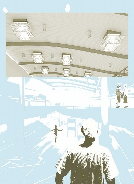Cloud Dwellers were engaged by the Brisbane Convention and Exhibition Centre to explore ways that increased natural light could be brought to the deep foyer space of their original Merivale St building. This would both enliven the space and reduce the reliance on artificial lighting. Our design utilises angular selective skylights teamed with acrylic diffusers to broadly distribute light throughout the day, and in particular to provide evocative illumination of the ceiling. The diffusers are also act as sculptural interventions scattered across the ceiling. From a distance, their simple geometries respond to the language of the original building. However they incorporate rich detail at the small scale, perforated in a pattern derived from the paper doilies that evoke the traditions of hospitality associated with a special event.